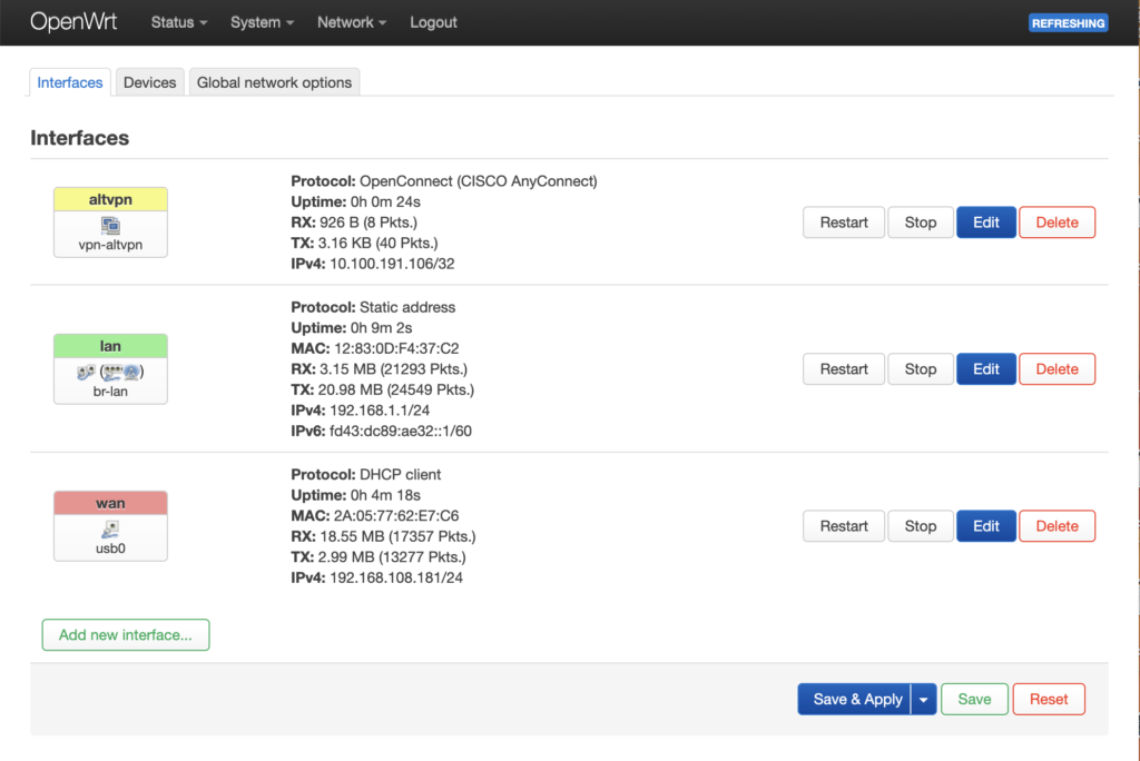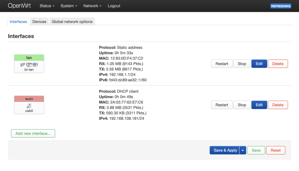 роутера, нажав Save & Apply на странице списка интерфейсов.