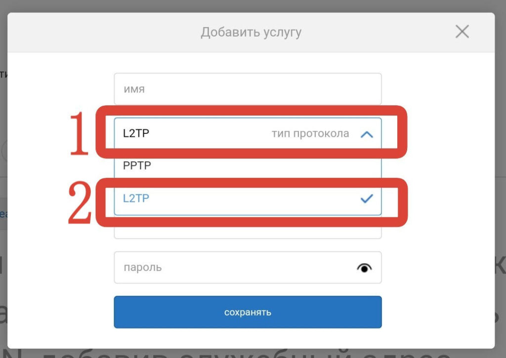 В открывшемся окне необходимо выбрать тип протокола L2TP: